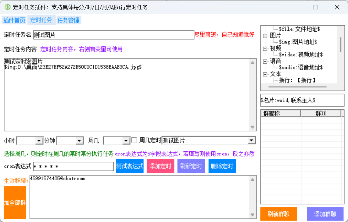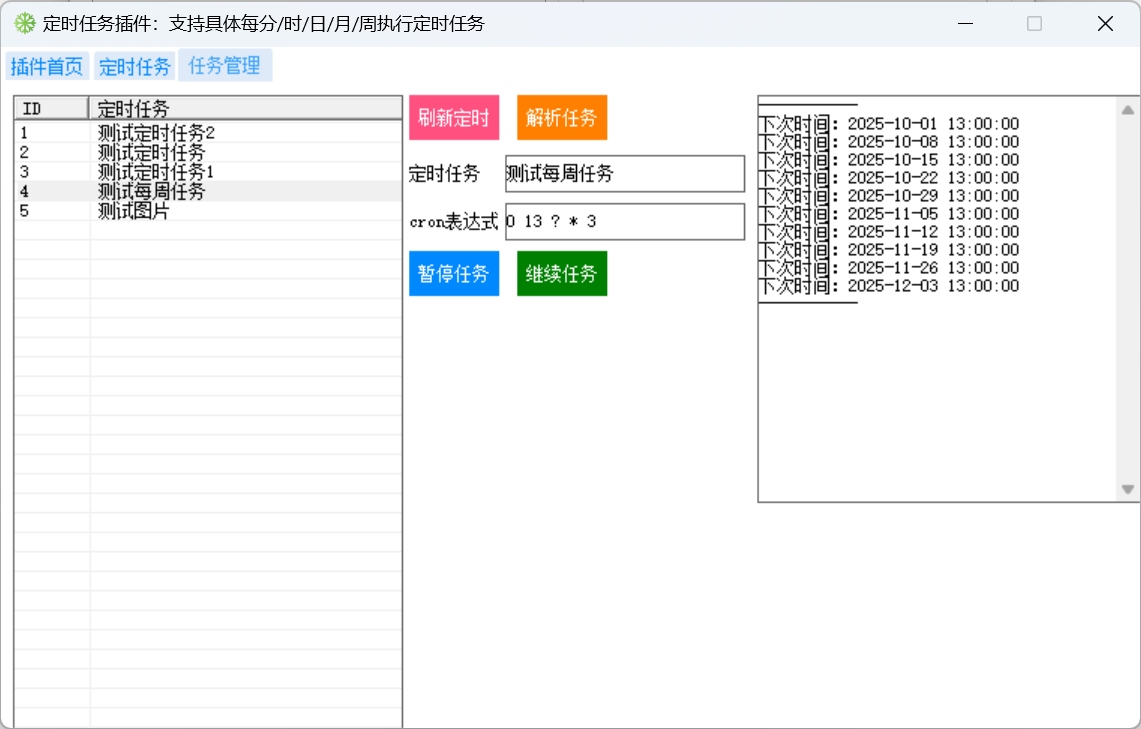 插件完全免费,支持:每分/时/日/月/周执行定时任务