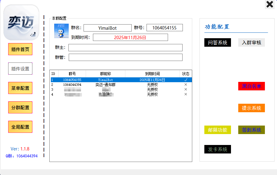 奕迈智能群管插件,旨在帮助群主和管理员更轻松、高效地管理群,同时为所有成员带来更多互动乐趣。